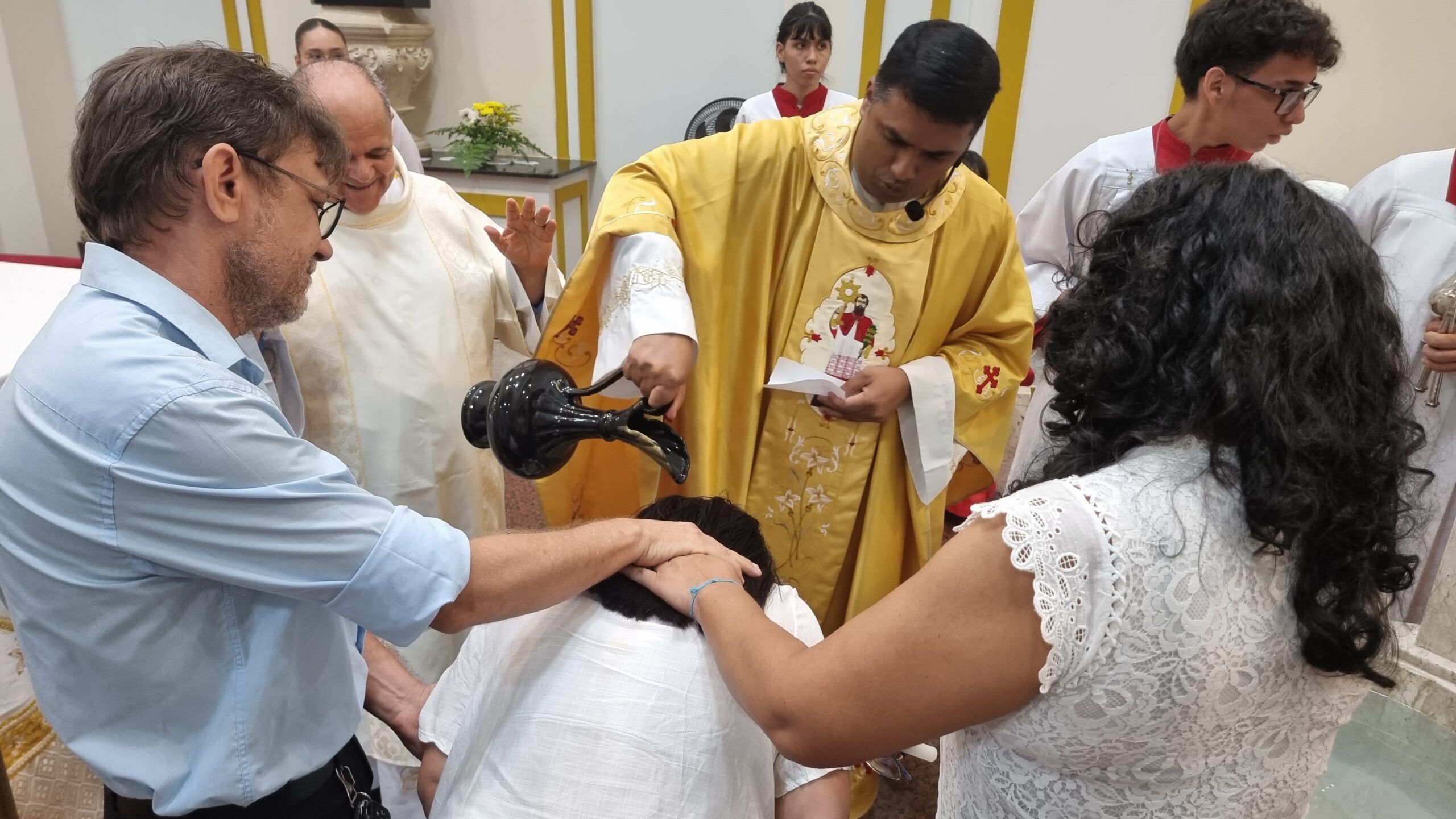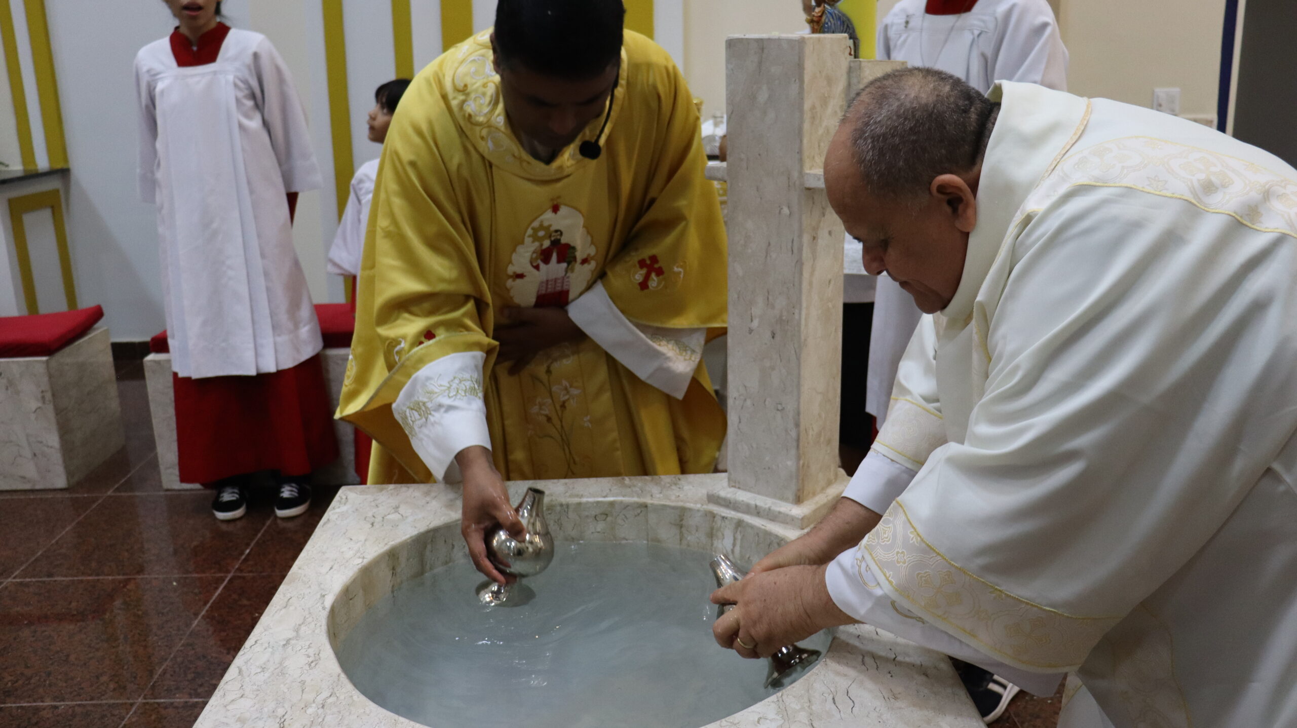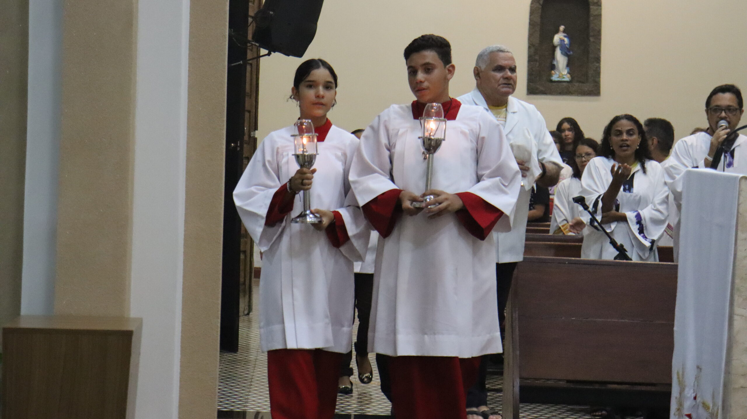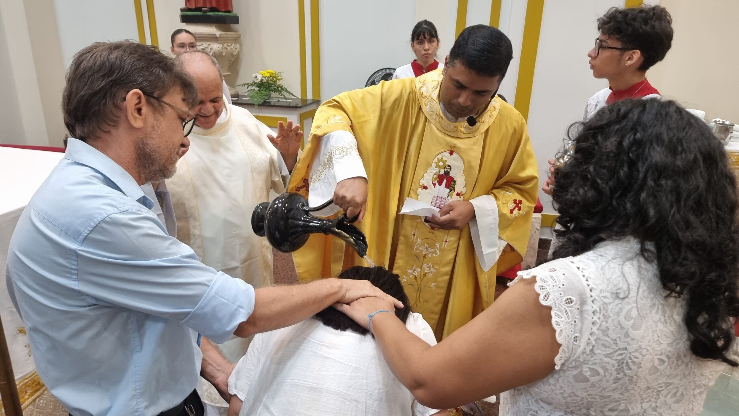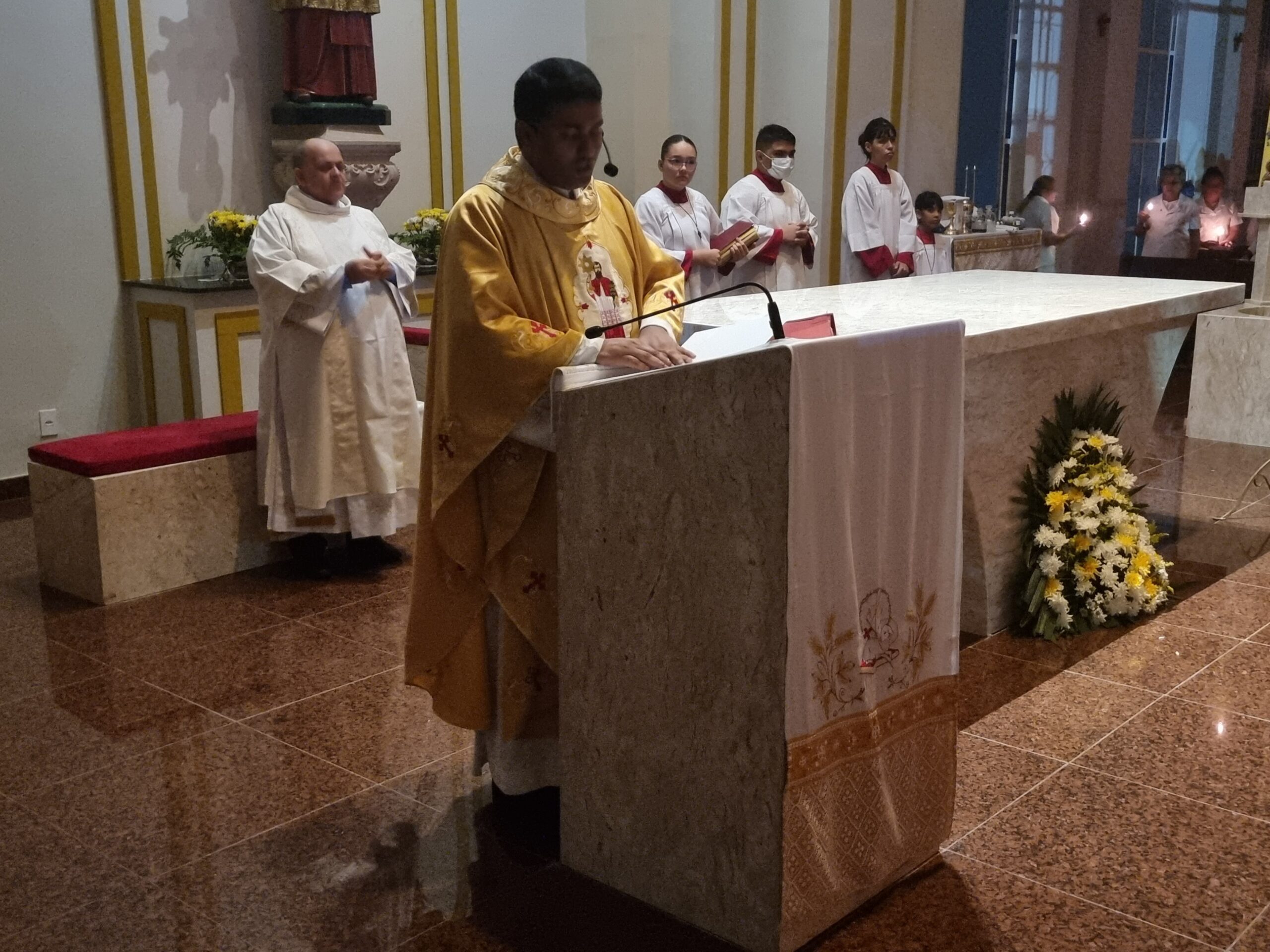 No Sábado Santo à noite 08 de abril, 2023, na comunidade São Raimundo Nonato celebraram a solene Vigília Pascal, quando se proclama a Ressurreição do Senhor. Com essa celebração chegamos ao ápice do Tríduo Pascal, iniciado na quinta-feira santa. Essa é a vigília das vigílias, dessa vigília provém todas as outras, é a celebração mais importante do ano. Na comunidade São Raimundo Nonato, ocorreu o batismo de dois adultos, em sua homilia, padre John ressaltou a alegria da ressurreição e esperança de vida nova, renovados com a Páscoa de Jesus.