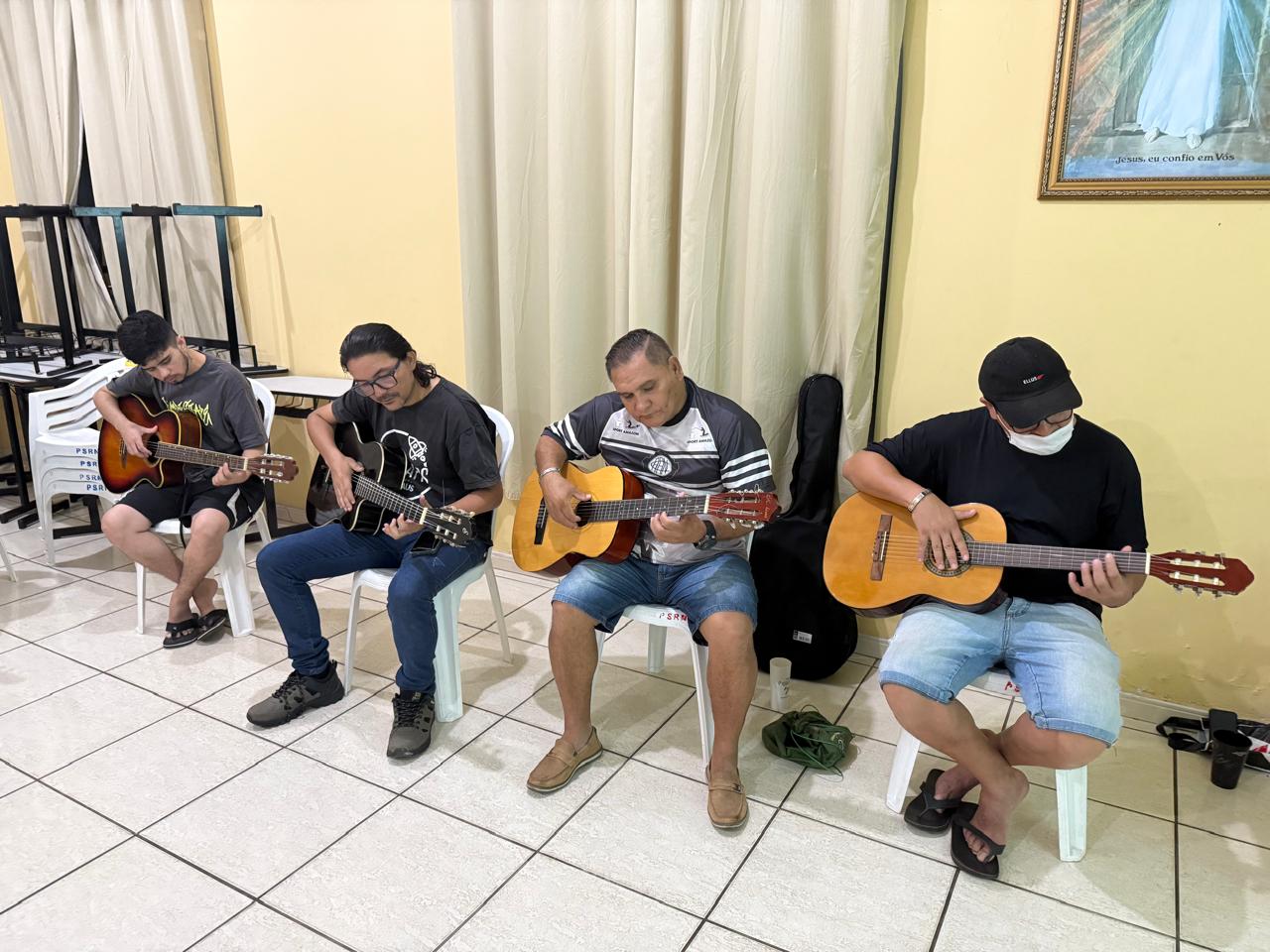 Na última segunda-feira, 17 de fevereiro de 2025, em resposta à demanda por tocadores para apoiar as atividades da nossa paróquia, a Pastoral da Música deu início a um curso básico de violão destinado aos agentes das pastorais, grupos e movimentos que já estão envolvidos nas comunidades (São Raimundo Nonato, Beata Maria Assunta e São Vicente de Paulo).