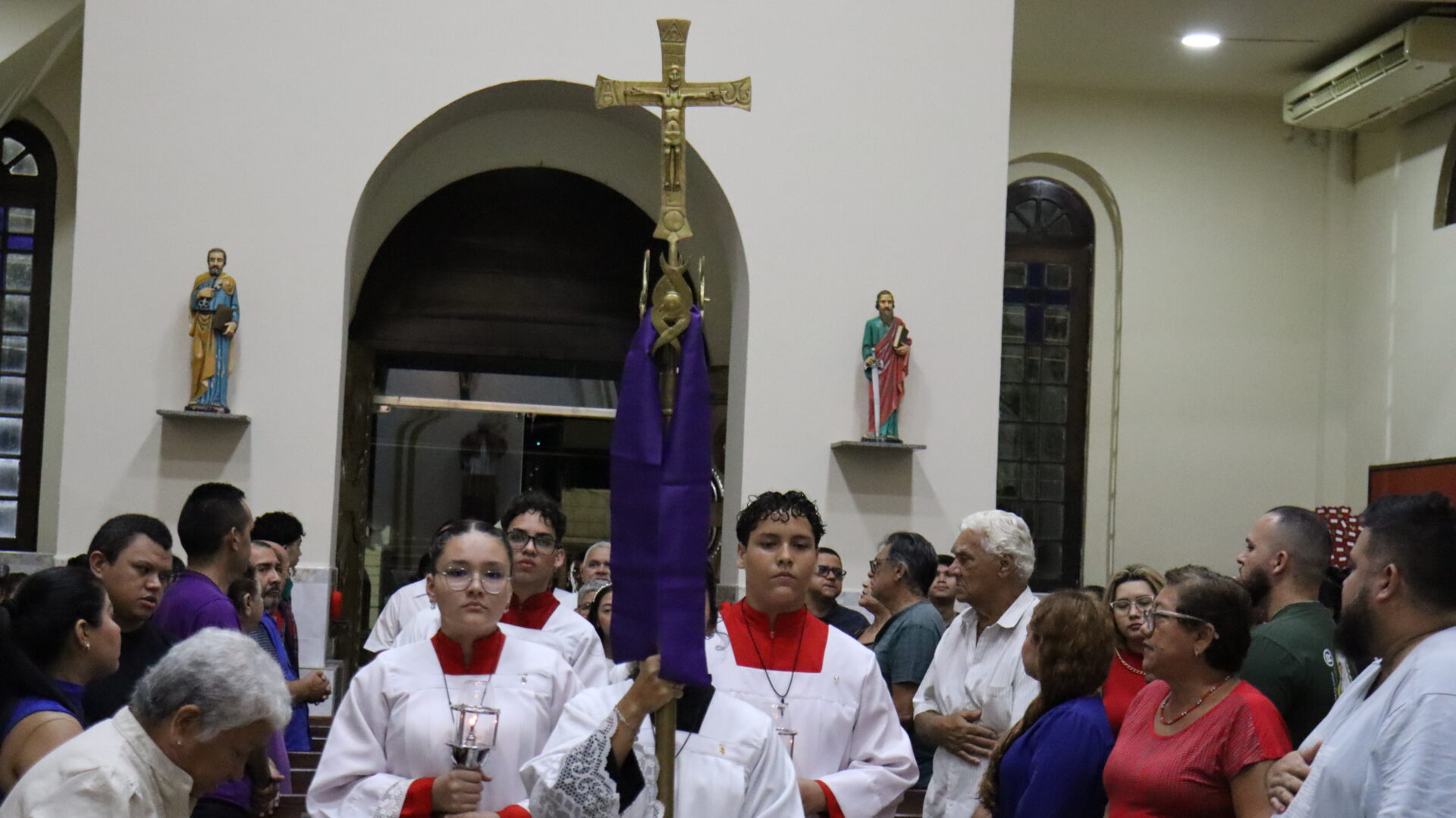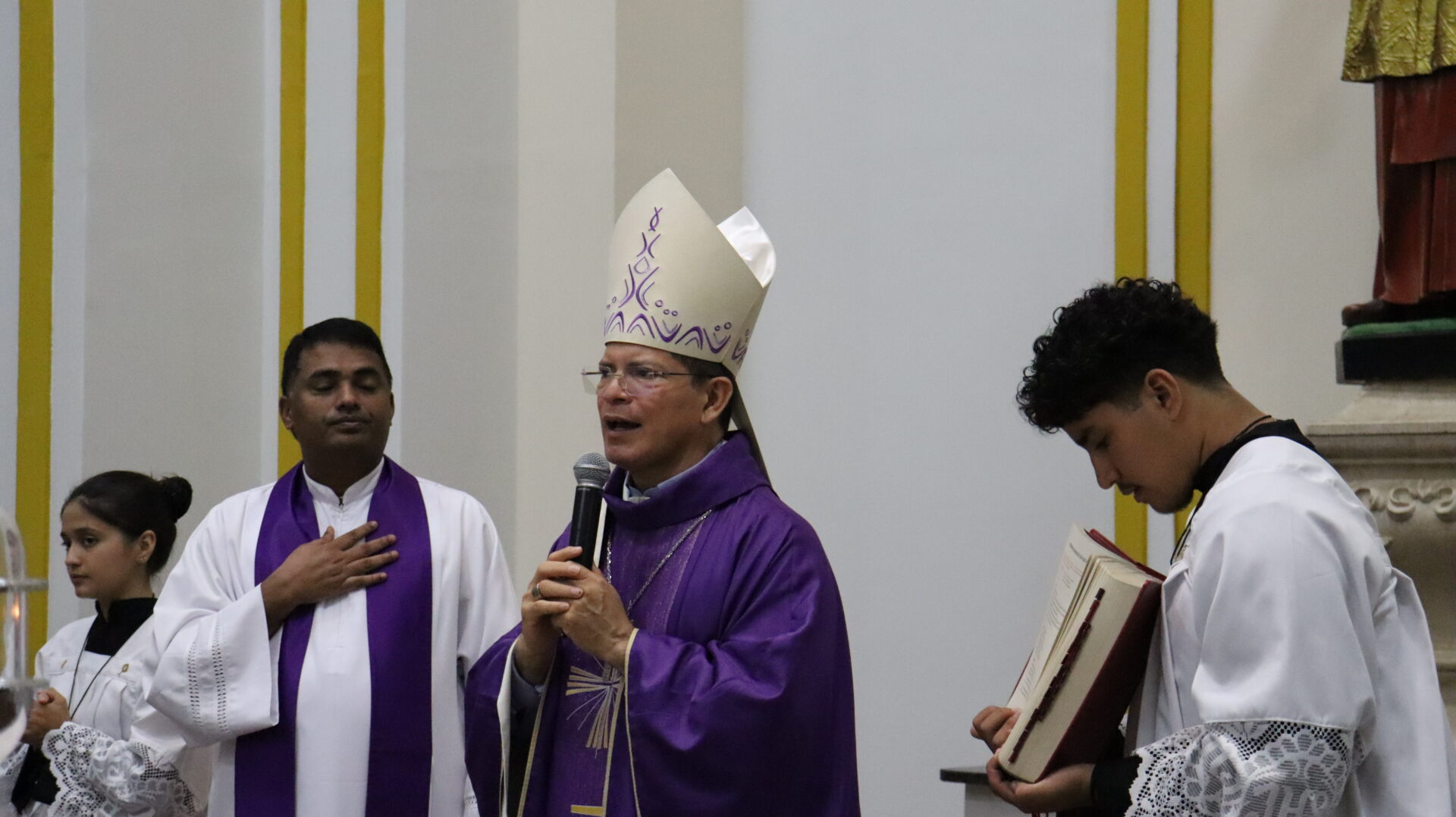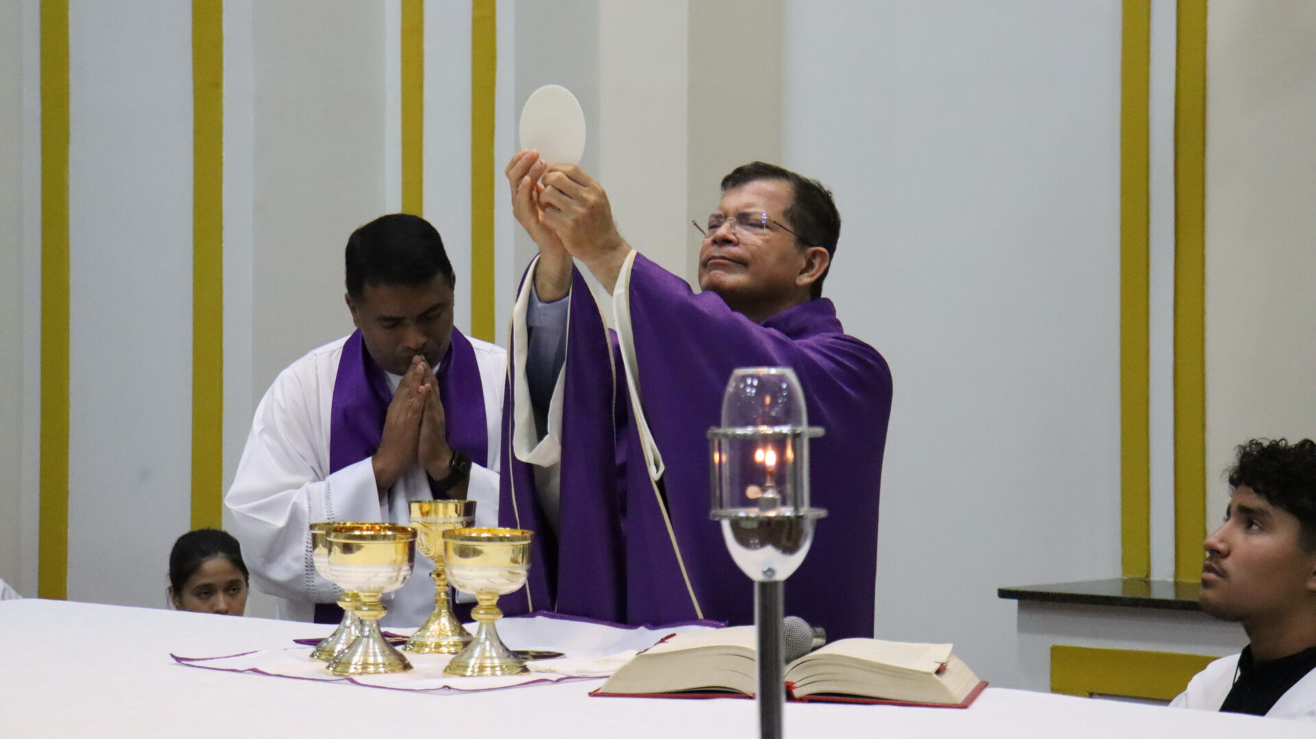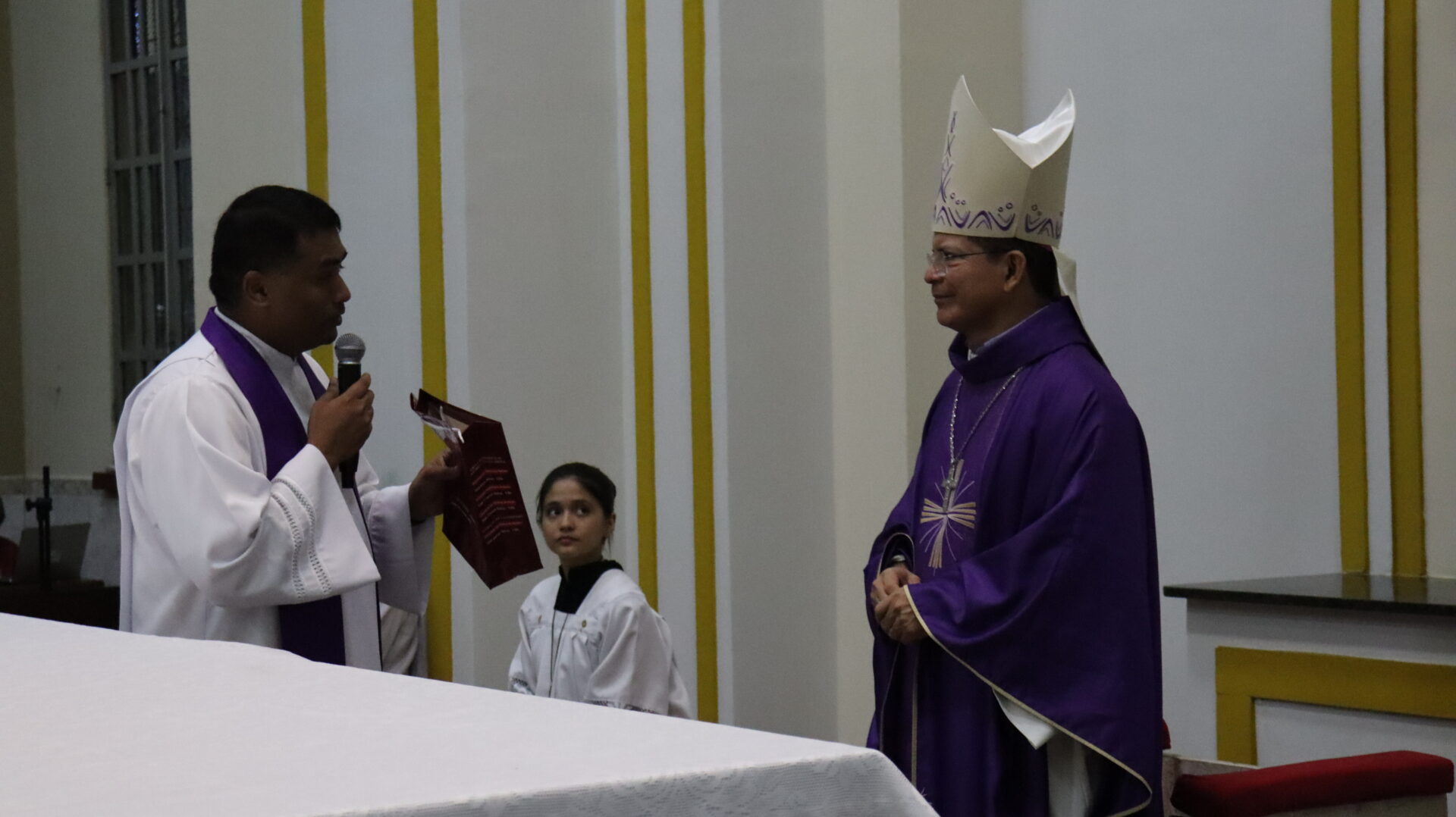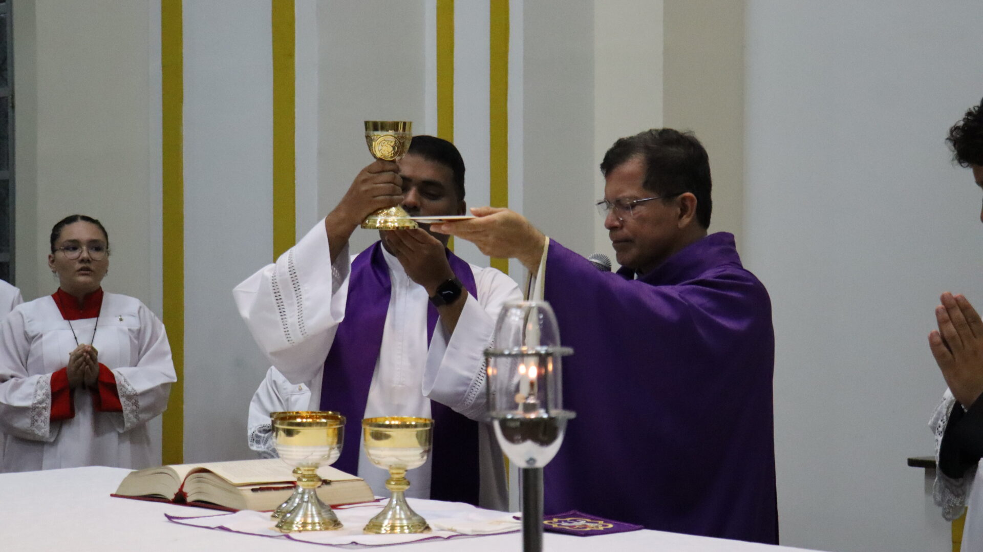Neste 1° Domingo da Quaresma (09/03/2025), na missa das 19 horas, tivemos a alegria de receber em nossa Paróquia o Bispo Auxiliar da Arquidiocese de Manaus, Dom Hudson, que presidiu a missa, tendo ao seu lado o nosso pároco, padre John Paul.